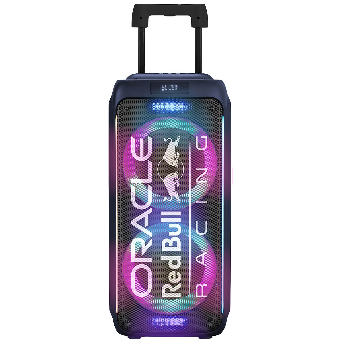Las luces LED Murticle Circle aportan un toque visual dinámico, mientras que la pantalla LED muestra el estado del dispositivo fácilmente. Su diseño robusto incluye una cubierta de acero para proteger los altavoces y, gracias a sus 2 ruedas y mango extensible, es sencillo de transportar a cualquier lugar.